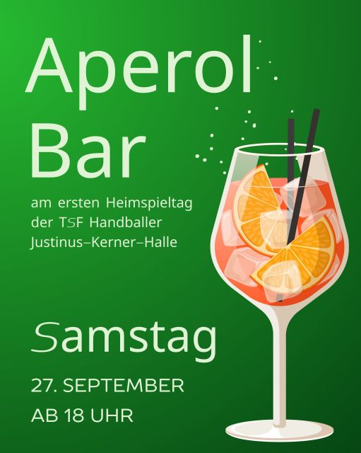 Das erste Heimspielwochenende steht an und am Samstag läuten wir ab 18 Uhr die Aktivenspiele mit einer Aperolbar ein.