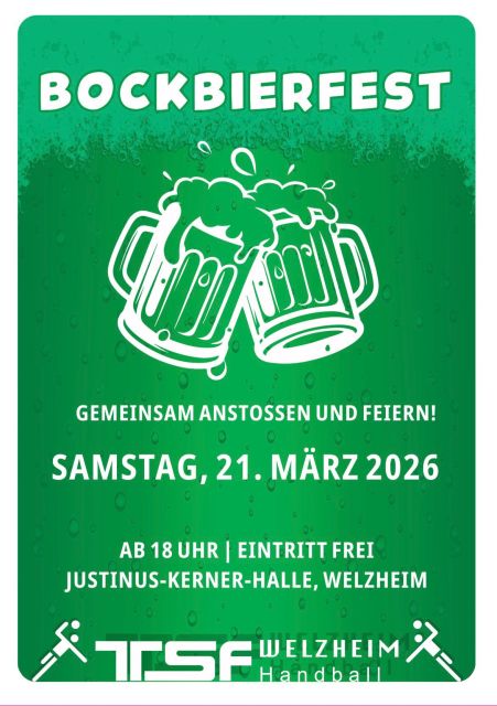 Am Wochenende findet der nächste Heimspieltag und das alljährliche Bockbierfest der TSF Welzheim Handballabteilung in der Justinus-Kerner-Halle statt.